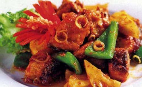 - Đun nóng dầu ăn, phi thơm tỏi và sả, cho cá vào xào, cho tiếp ớt Đà Lạt, dứa vào xào đều tay.