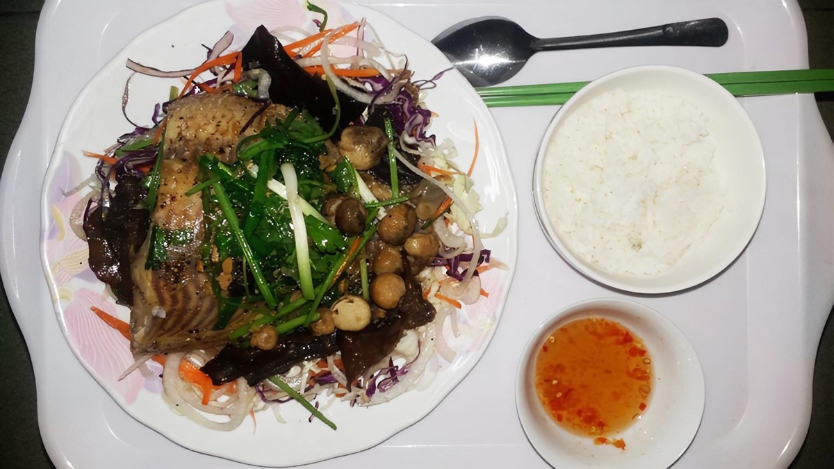 Cá diêu hồng chưng tương thơm ngon, đậm vị mà không bị tanh, kết hợp với các loại nấm, lá nhàu và lá cách đem lại một món ăn hấp dẫn và hứa hẹn sẽ rất hao cơm đấy!