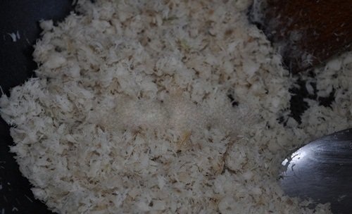 Bước 3: Vặn lửa nhỏ liu riu, đảo đều tay cho đến khi ruốc cá thu bông, tơi xốp, khô và có màu vàng thơm như thế này thì tắt bếp. Nhớ là đun bằng chảo chống dính các bạn nhé. Tới công đoạn này là các bạn đã hoàn thành cách làm ruốc cá thu rồi đấy.