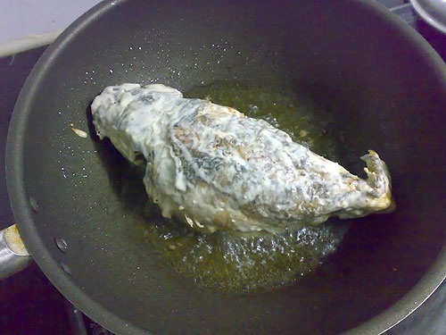 Trước khi dọn, lại áo 1 lớp bột quanh  và chiên lần 2. Như  thế cá sẽ rất giòn và ngon hơn rất nhiều