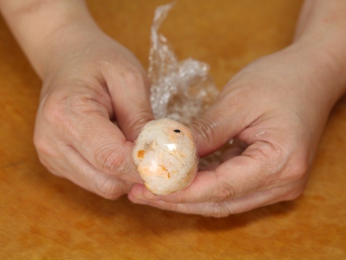 Bước 3: Chia chỗ cơm thành các phần đều nhau và vo tròn lại. Có thể cho cơm vào màng bọc thực phẩm bọc chặt lại để định hình cơm.