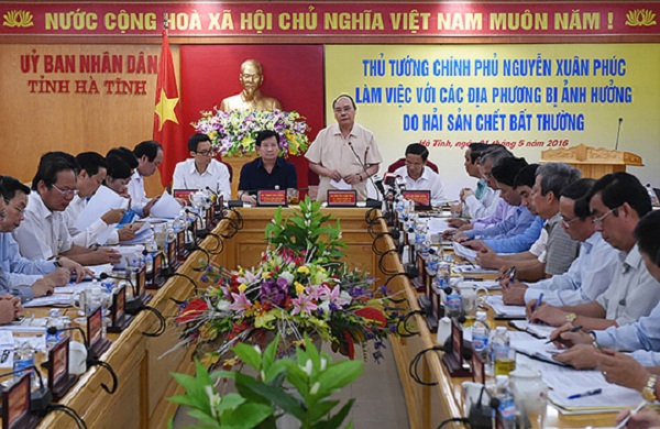 Thủ tướng đánh giá sự cố môi trường hiện tượng hải sản chết bất thường xảy ra thời gian qua tại các tỉnh Hà Tĩnh, Quảng Bình, Quảng Trị, Thừa Thiên - Huế là sự cố môi trường nghiêm trọng, bất thường, lần đầu tiên xảy ra ở nước ta trên vùng biển rộng, nên việc xác định nguyên nhân phải thực hiện khẩn trương, thận trọng, chắc chắn, có căn cứ khoa học.